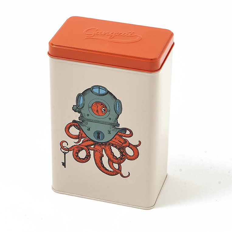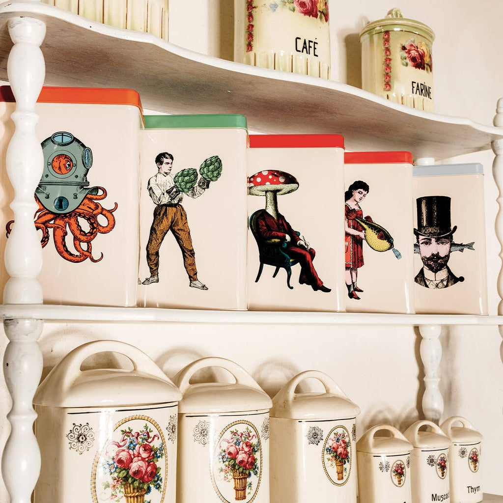 Kovinska škatla z motivom Scaphopoulp, priznane francoske znamke Gangzai, bo popestrila vašo kuhinjo. Vanjo lahko spravite moko, riž, kavo ali čaj, lahko pa je tudi samo okras na polici, ki bo vašo kuhinjo naredila bolj veselo in razigrano.