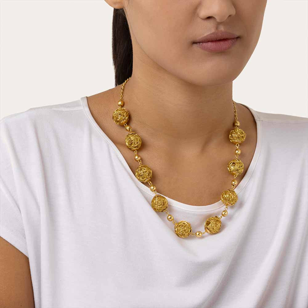 Verižica z bunkicami je  ročno narejena iz medeninaste žice.
